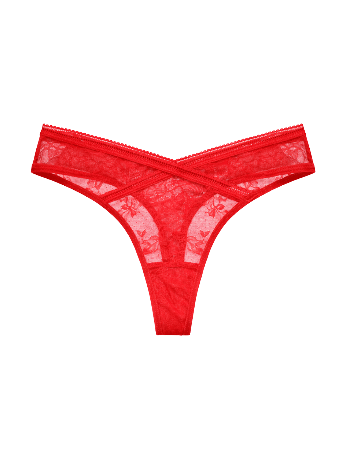 Add a touch of playfulness to your lingerie drawer with these cute panties featuring a floral lace form and cross-trim detailing.