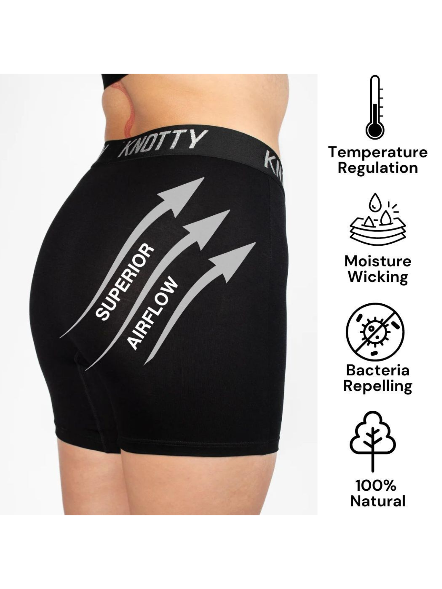 Crafted from our temperature-regulating proprietary AiraModal™ fabric, a must-have for vaginal health, with sweat-resistant, hypoallergenic and moisture-wicking benefits. This makes our products breathable, infection-resistant, 100% natural, and oh-so-soft feeling even after washing.