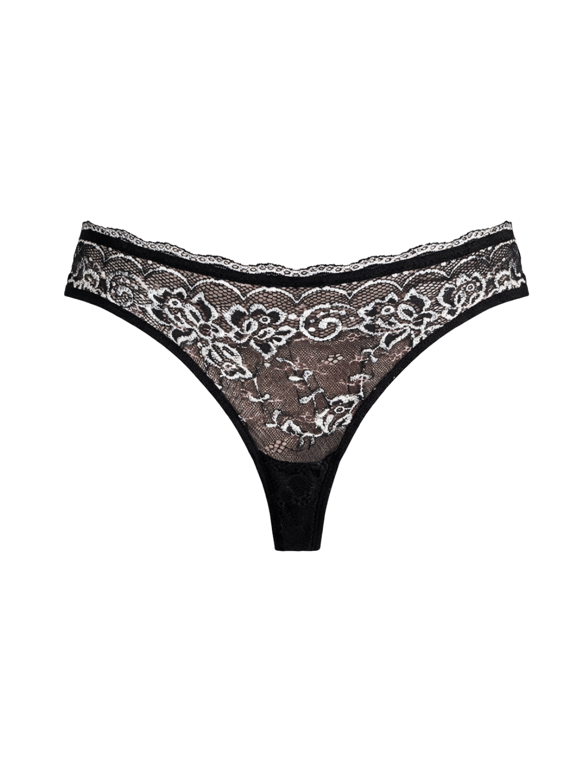 Flattering stretch black lace with a sprinkle of silver floral details throughout.