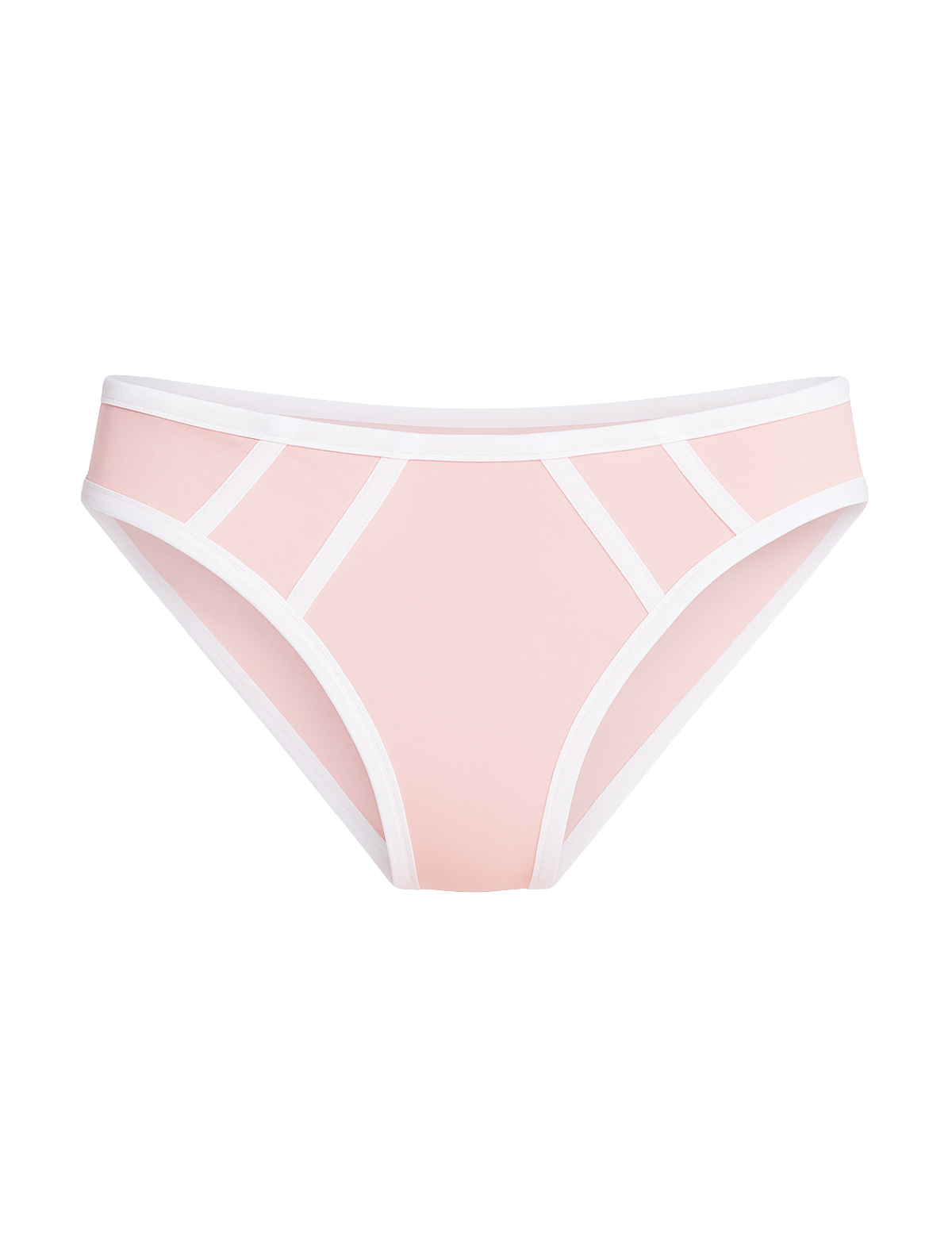 Dive into flirtation with our powder pink sporty briefs! This playful cut combines the sweetness of peachy pink with a sporty twist. The seams, outlined in white, add a touch of sass, and get ready to show off your sporty and flirty side in this adorable number!