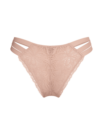 With strappy criss-cross hip straps, this lace cheeky is made for stretch! Wear it low or high-rise for your comfort.