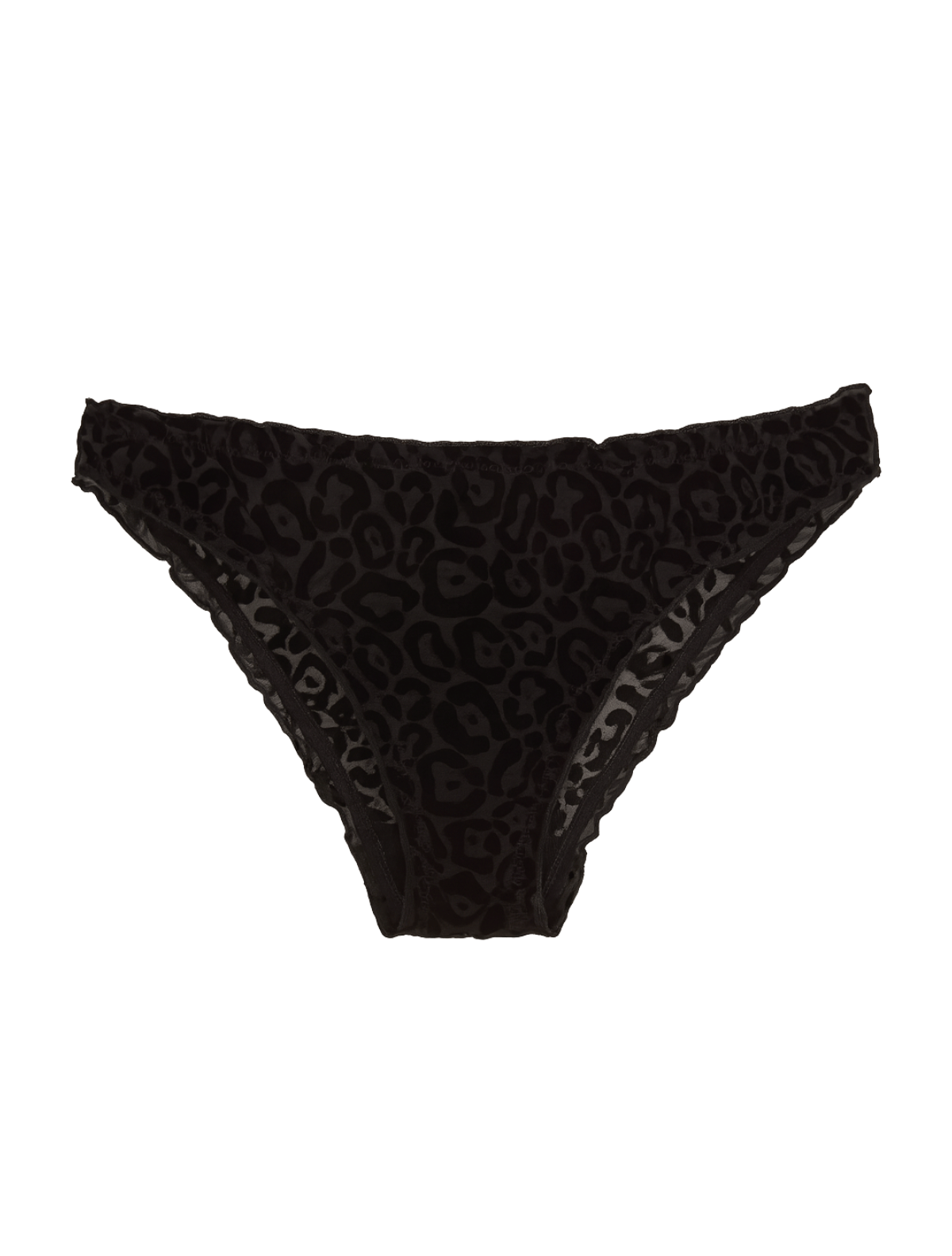 Includes a beautiful, timeless velvet leopard print with a ruffled trim. This pair feels like total luxury! 100% cotton liner.