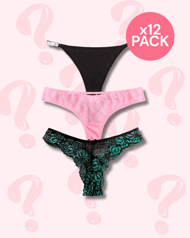 Each pack is a surprise assortment, so styles may vary from the images shown. Mystery bundles include a mix of silhouettes, with no guaranteed ratio between g-string and thong styles. That’s part of the magic ✨